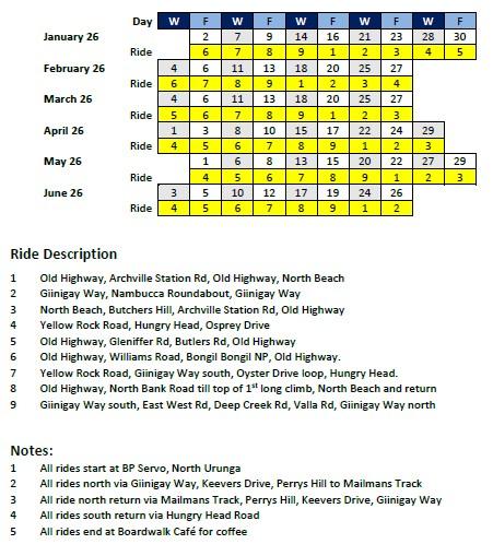 WEEKDAY RIDES (leave 8:00am @ BP Urunga)